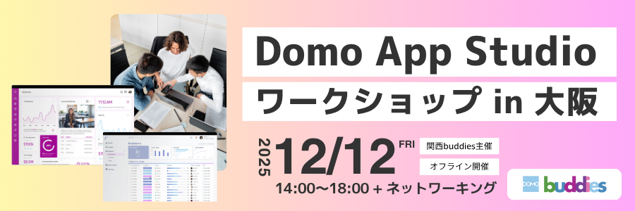 Domo buddies(ドーモ バディーズ)とは? ”Domo buddies”は、データ分析に必要なあらゆる機能を提供するクラウド型(SaaS)BIプラットフォーム、Domo(ドーモ)の技術力向上及び活用推進を目指した、日本独自のユーザーコミュニティです。「ユーザー同士の繋がりができる」、「知りたいと思う情報が共有される」、「日々の悩みを相談できる」そんな場にしていきます。仲間で一緒に...