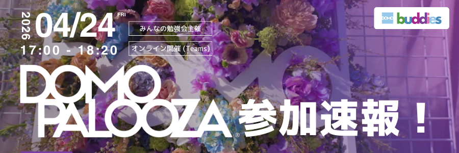 | 17:10-18:00 | Domopalooza2026 参加速報!Domopalooza2026に参加された方から、現地の経験や情報をご共有いただきます。※ 登壇者は決まり次第掲載いたします |